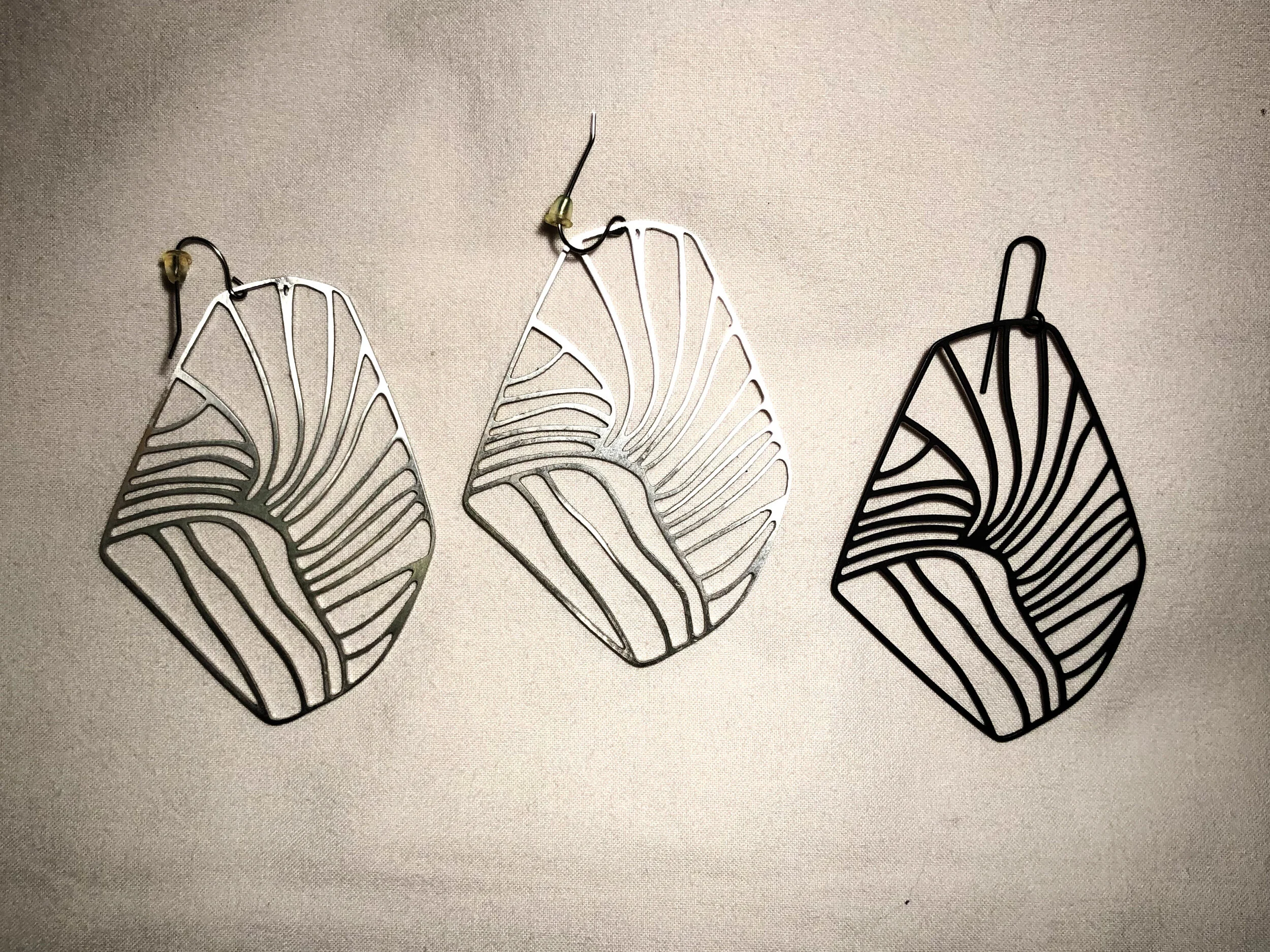 In 2018, I suffered a devastating loss - the pair to one of my favourite earrings. After some failed attempts to track down another pair from old or left over stock from the seller, I decided to take matters into my own hands and digitally fabricate a copy using the single original earring I had left. I reached out to a friend who works in 3D Printing Laboratory for Human Anatomy Education. I provided her with a 1:1 .ai file that I had been able to produce by scanning the original earring and using image trace to translate the jpeg file into a vectorised image in Illustrator. She then took the .ai file and translated it into an STL file, the industry standard for 3D printing. I was limited to ABS plastic as a material for a very reasonable price and got 4 copies printed.